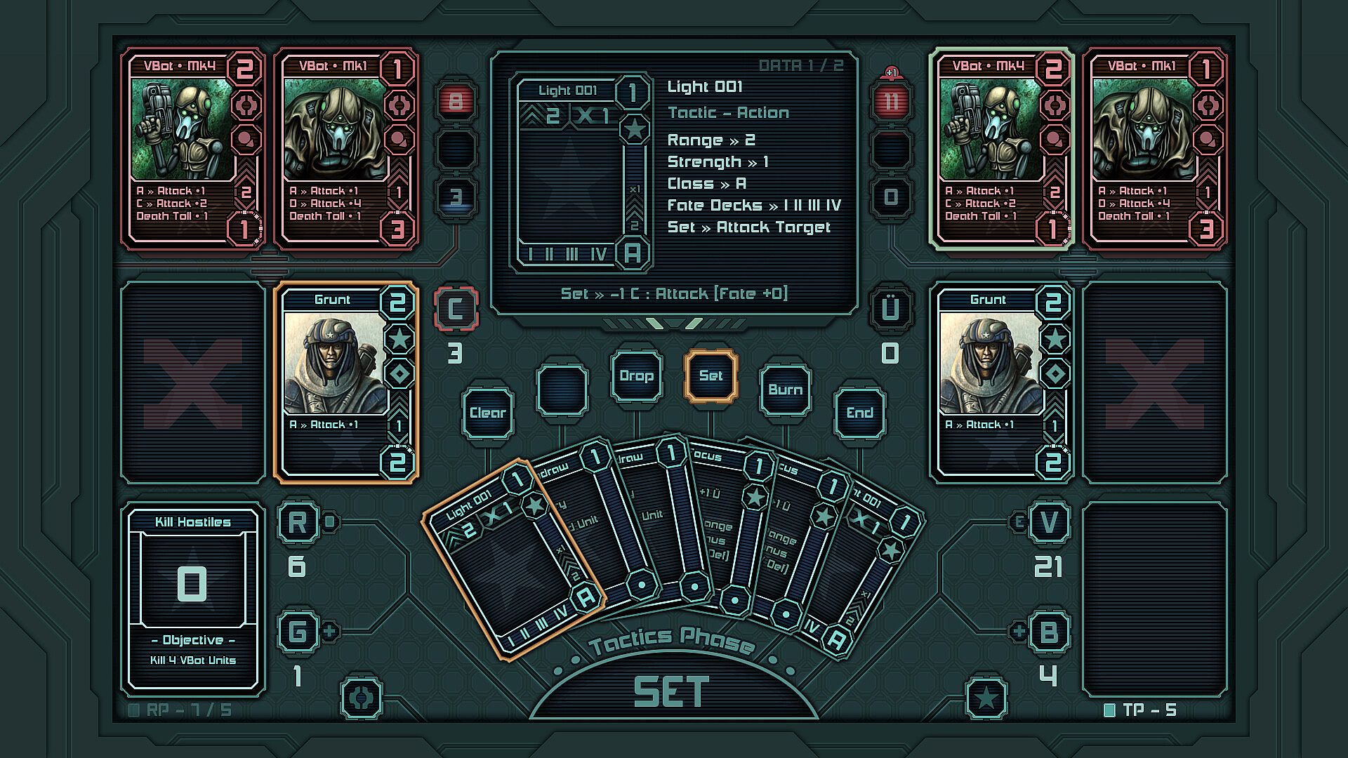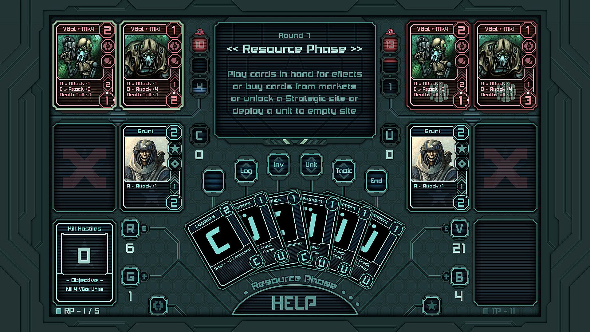 This game is a strategic card based wargame with deckbuilding elements and the detailed tutorials will take you through how to play the game. As it was built to be a game that offered a lot of strategic options during a mission it is not a simple deckbuilder but is a game that requires thought and a bit of time to learn its mechanics.