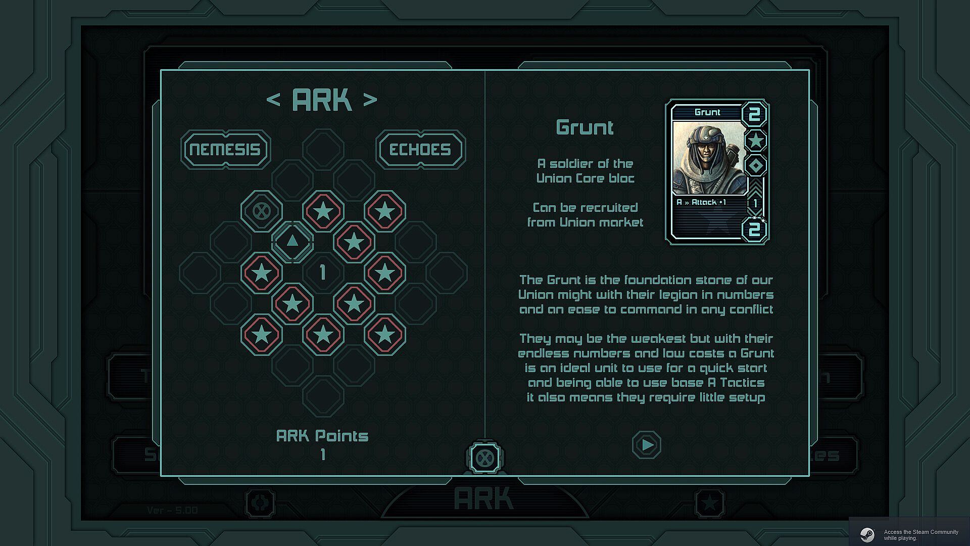 Command tactical forces as an Overseer in the Union, tackling objective-based missions in this strategic card-based wargame with deckbuilding elements. Recruit Units like Grunts and Scribes, enlist Guild support, and manage dual decks-Resources and Tactics-alongside the Bond System and Fate Helix for action resolution. Balance multiple resources across varied challenges, from training missions and full story-driven V Missions to combat-focused Skirmish modes that demand eliminating enemy ranks within round limits. Detailed tutorials guide new players through core mechanics, leading into deeper strategic tests that reward thoughtful planning over quick plays. The ARK meta layer lets mission-earned points unlock over 80 lore-filled Content Pods and activate options like Echoes for Glory boosts. This solo PC strategy game suits players who enjoy complex deckbuilding fused with wargame depth and crisis management.