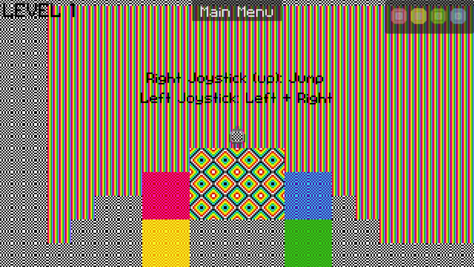 Play as Static Boy as you journey from Static to Red to Yellow to Green to Blue to Checker portions/sections, of 12 levels, that can be played in any order.