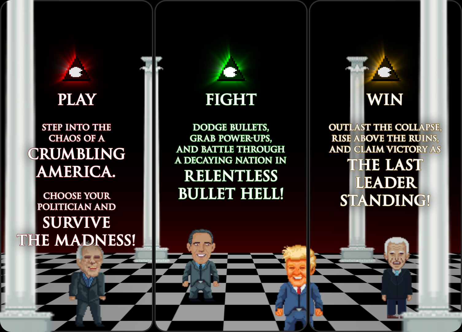 In this unholy blend of satire, action, and surreal horror, Stranglehold of the Elite flips the bullet heaven genre on its head. Choose your favorite (or most feared) political figure and wade into the festering heart of a nation devoured by corruption, conspiracies, and brain rot.