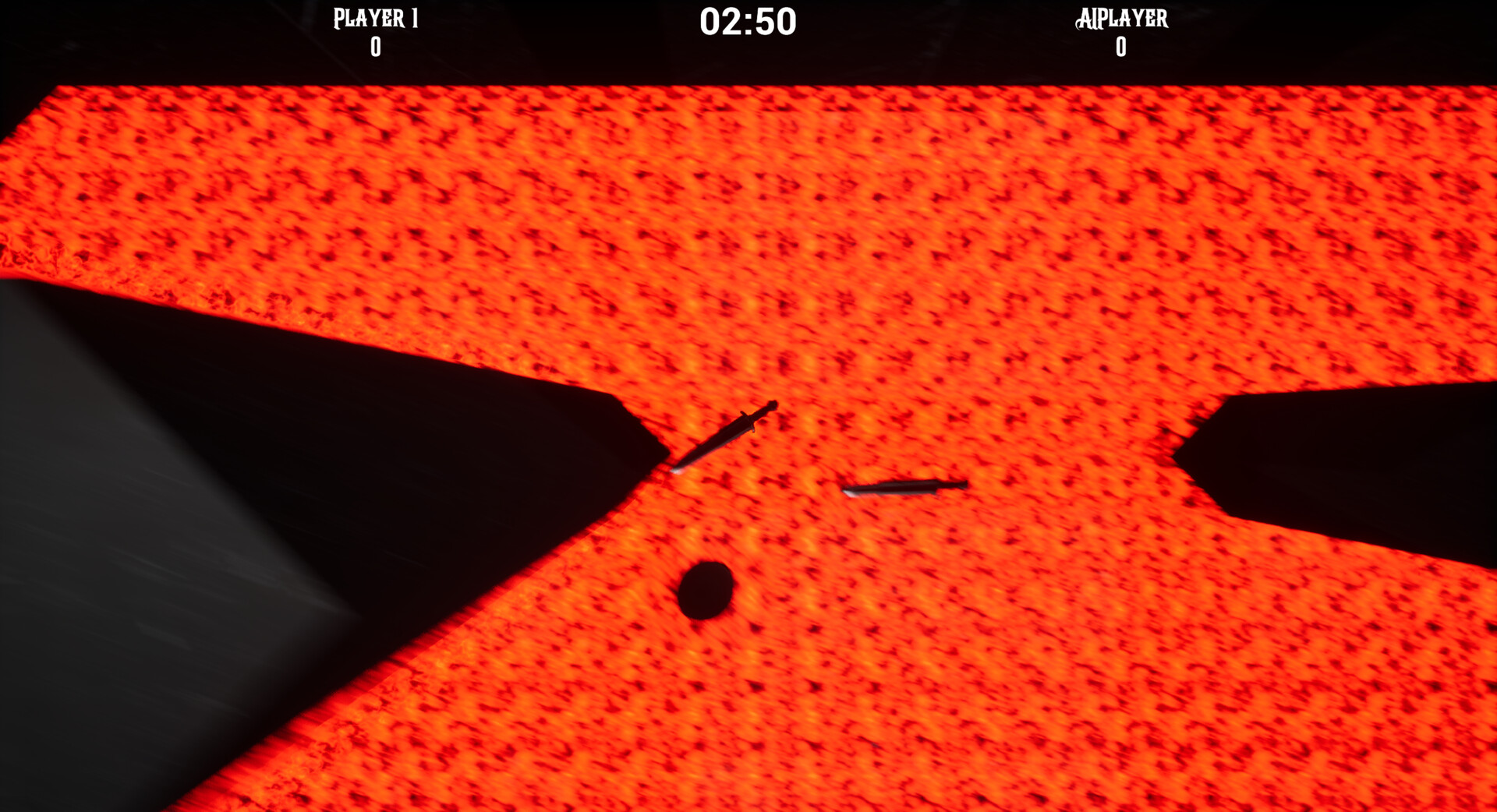A simple passion project from a solo developer. Inspired by air hockey, this game is a 3D top-down game where you control a slippery floating sword guided solely by your mouse. Like air hockey, you and your opponent compete to strike a puck into your opponent's net while defending your own. However, unlike air hockey, this game allows you to glide across the entire arena (not just your side) and strike your opponent's weapon as well as the puck. The swords can be difficult to control, much less the puck, so make sure to guide them with precision using your mouse.