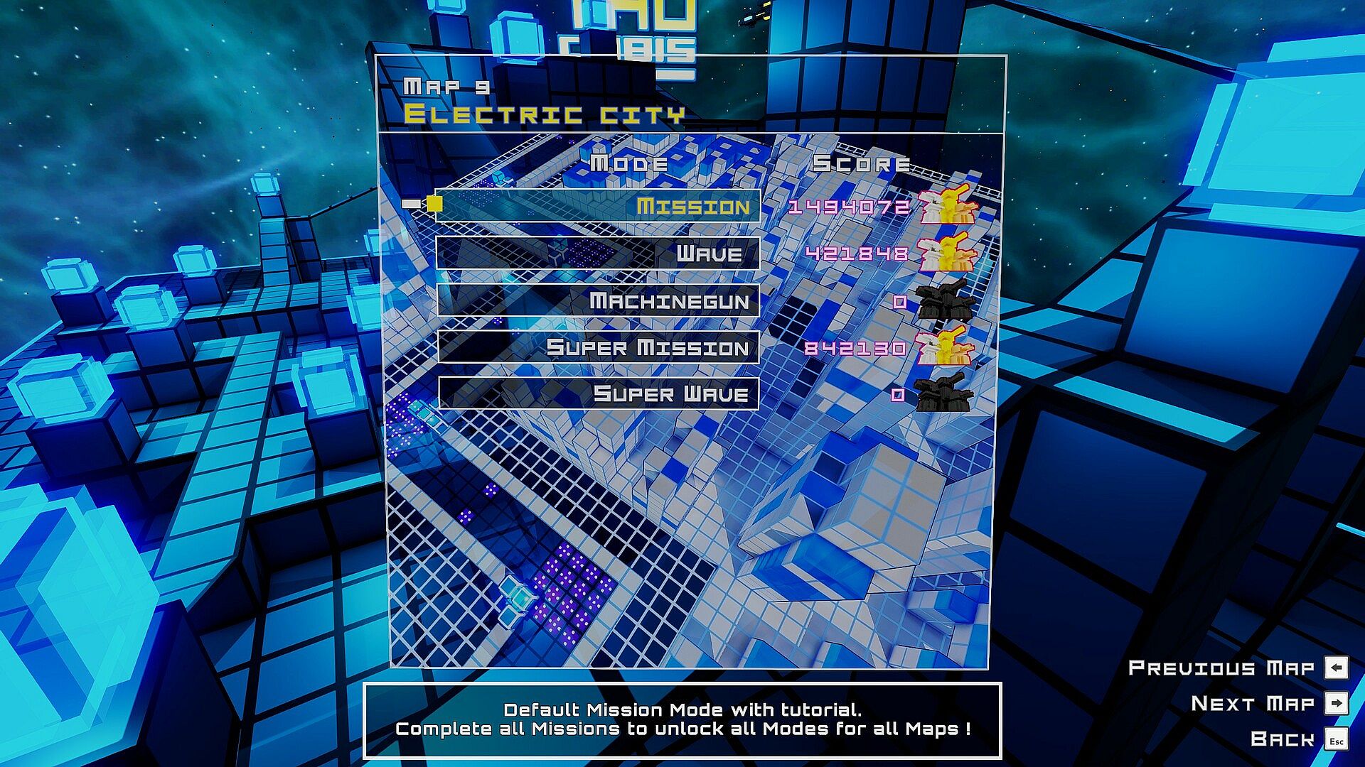 • Each map is playable in 4 to 8 Modes for 111 Challenges .