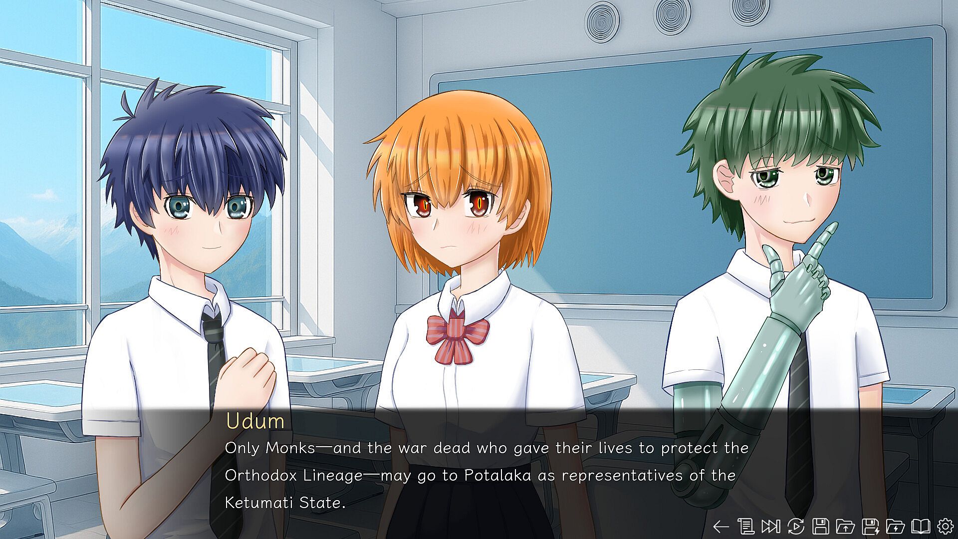 The Sound of the Conch in the Age of Declining Dharma is a visual novel themed around Buddhist philosophy and mythology.