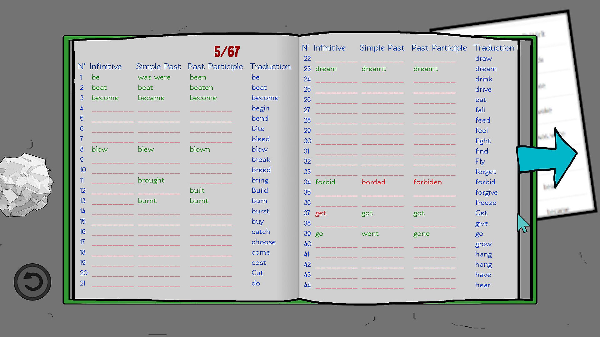 You will have to write the present tense, the past tense and the past participle of the irregular verbs asked by the enemy.