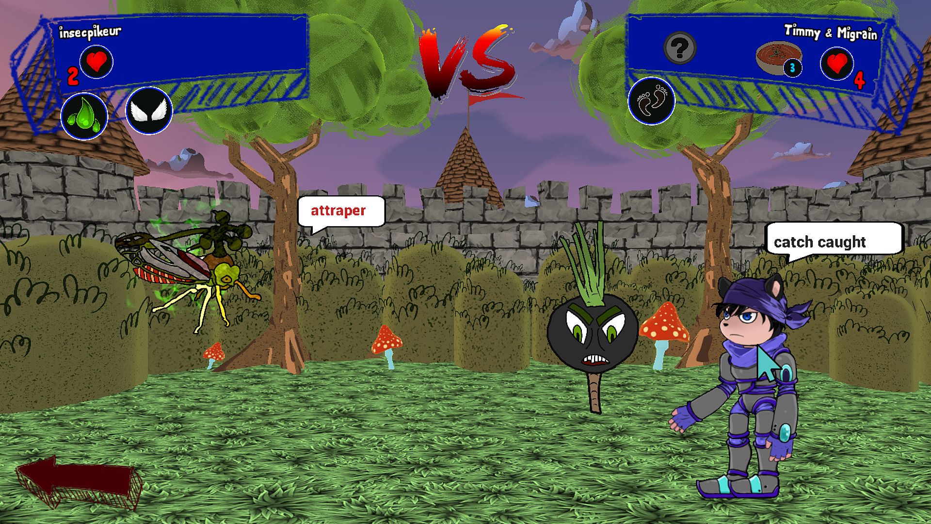 You play as Timmy, a young cat accompanied by his best friend Nono a legendary VerbMon. You will begin your adventure in a school specialized in hunting VerbMons, to capture them you have to learn irregular verbs. Once you have passed the exams you can go on an adventure!