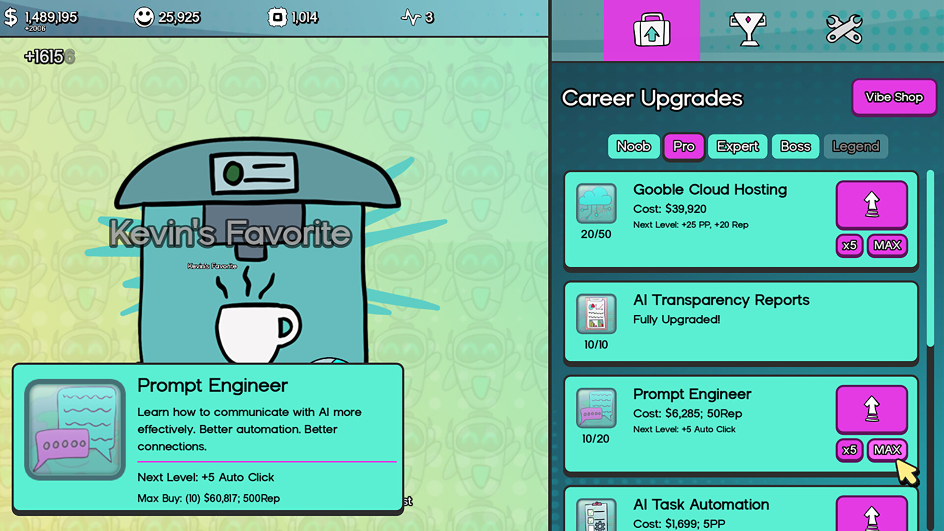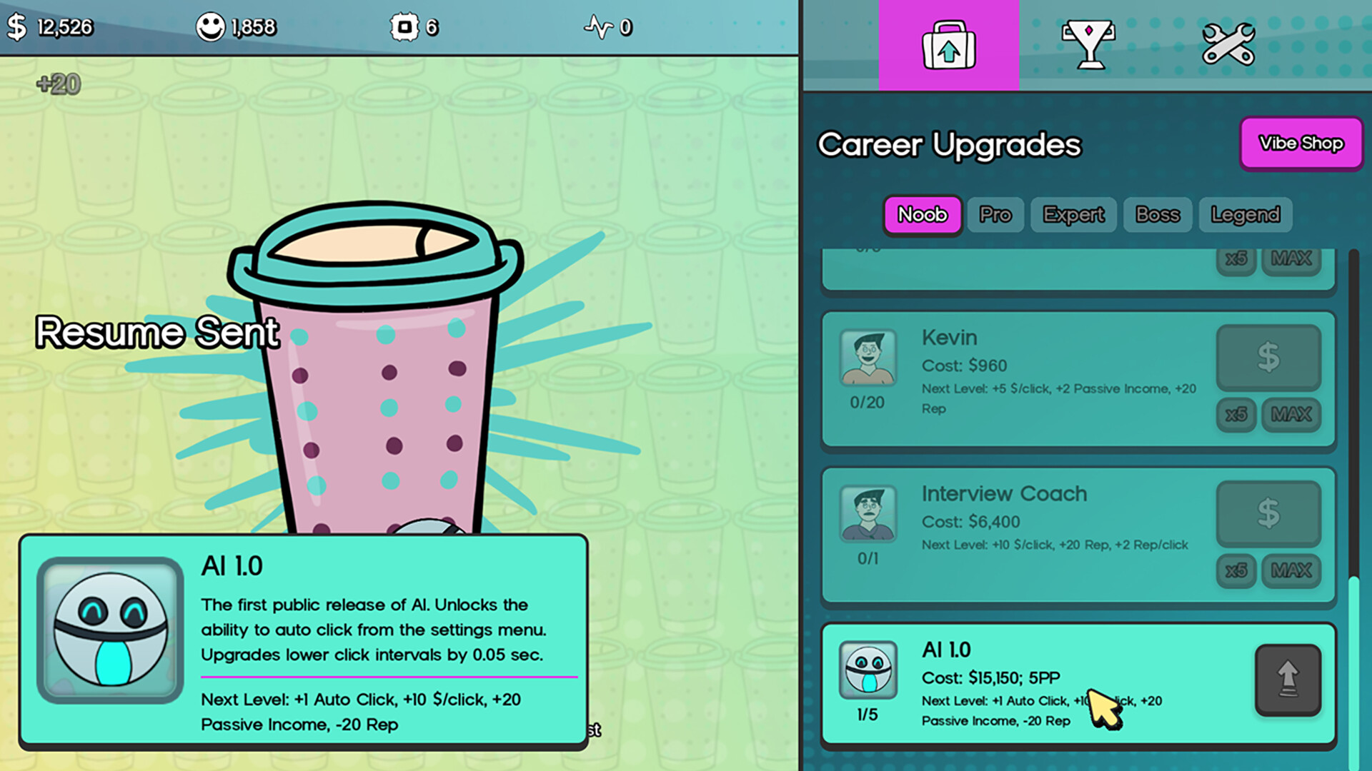 Start as a college graduate looking for work, spending late nights and long days fueled only by a cup of coffee, as your clicks drive you forward. After hundreds of resumes and your first encounter with AI, you finally receive a job offer from an AI startup, In Beta Forever, Inc. During your boring and routine career obligations, you discover the shortcut has been in front of you the entire time. You start handing off your work to AI, and you feel you can run a business with how easy things have become. Watch as your career evolves and the world of AI unfolds before your very eyes on your journey to becoming The Vibe Lord.