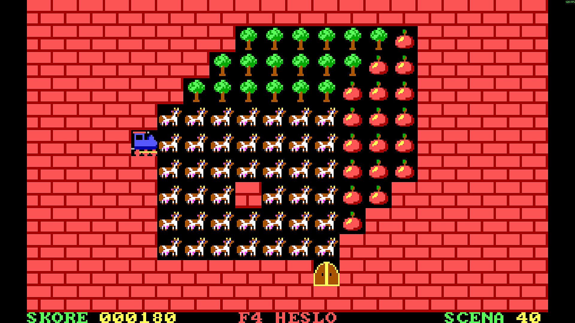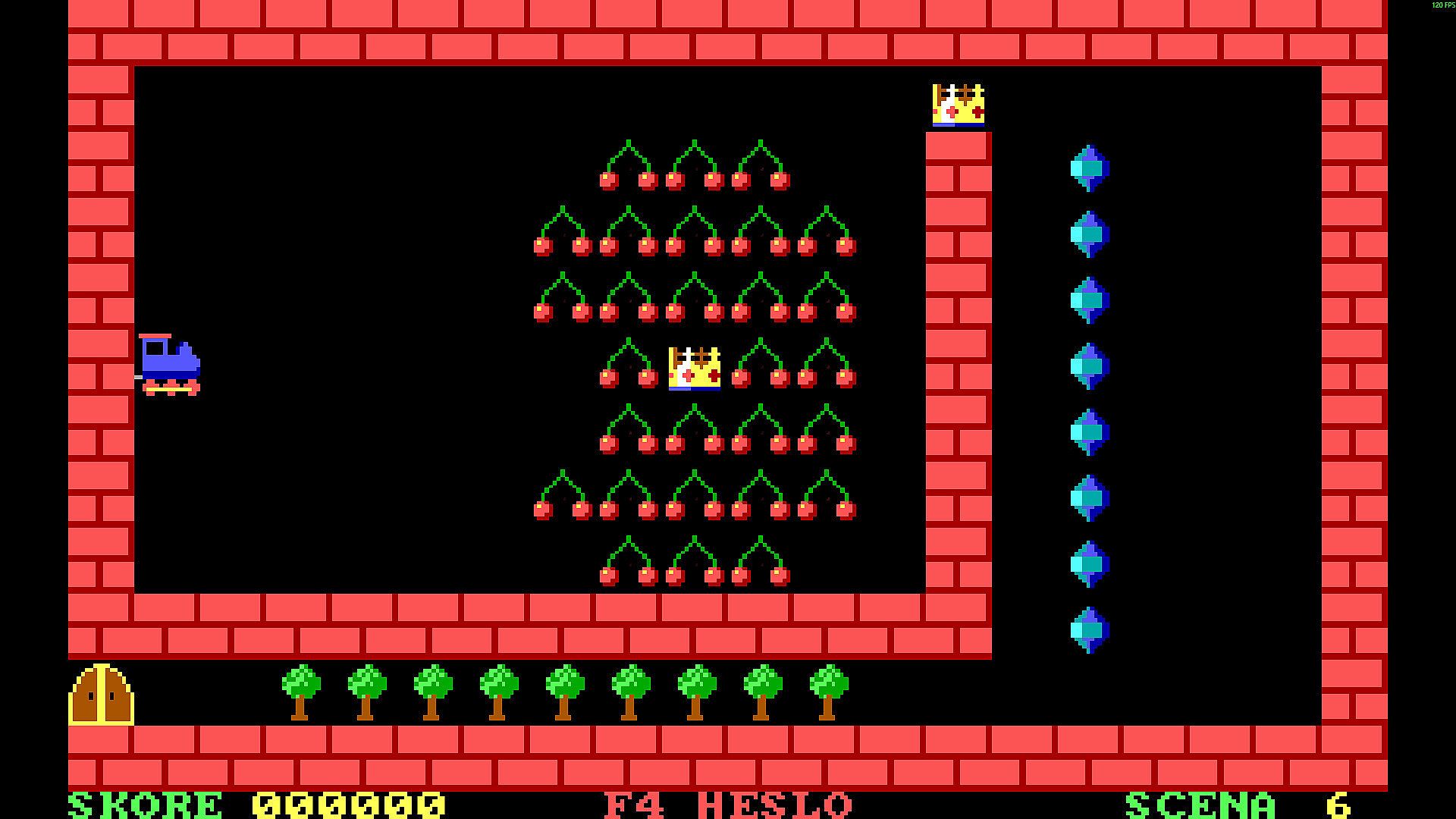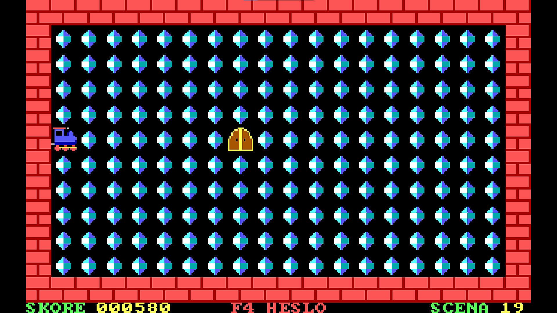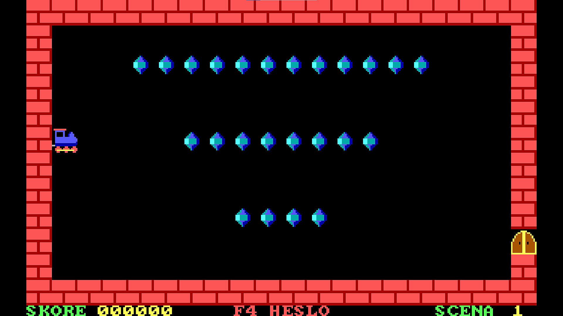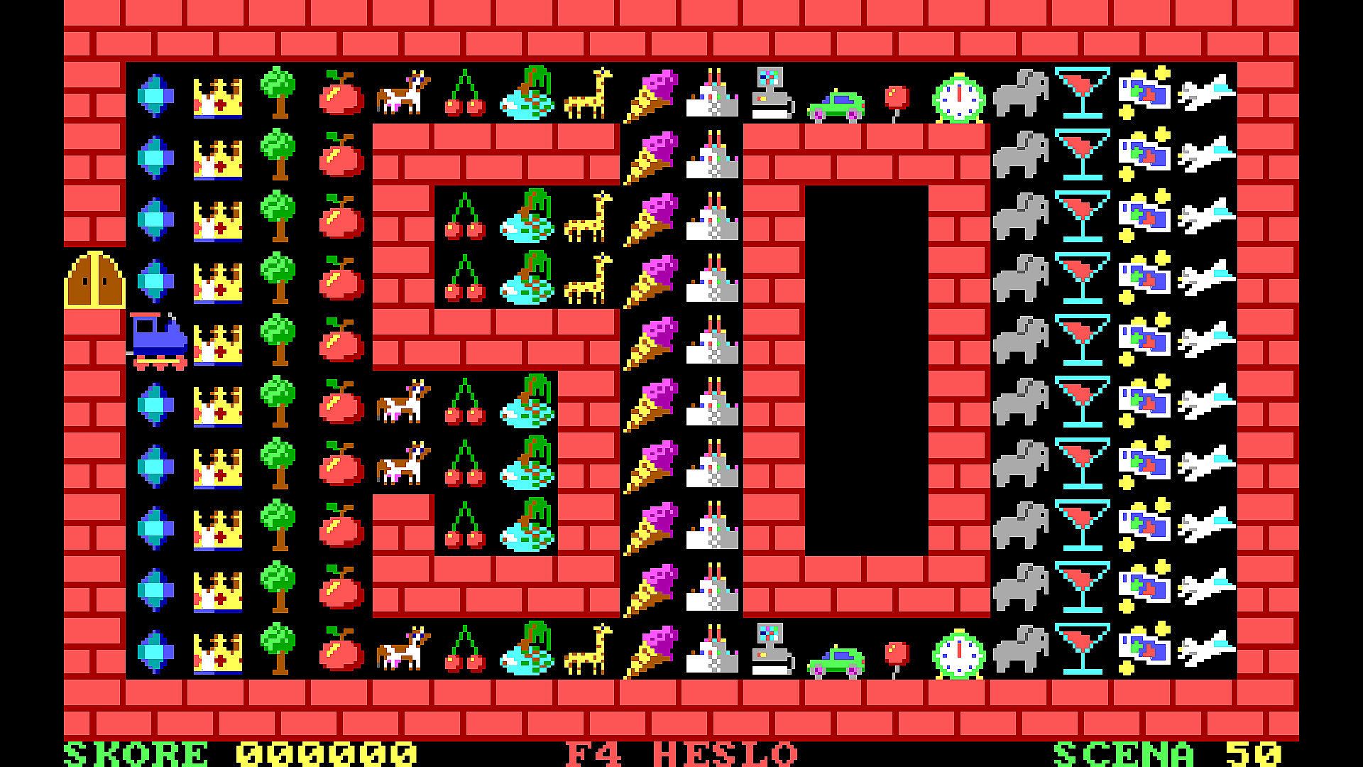 A fairly well-known Czech freeware game from 1993. You control a locomotive and your task is to collect all the objects you see on the screen. With each collected load, your train grows by exactly one wagon. The task in this 2D game is to control the train and collect various objects with it, which will be attached to the train in the form of a wagon. After hitting a wall or wagon, the level is reset. After collecting all the objects, just go through the gate to the next level. Each level has its own password, through which it is possible to return to it.