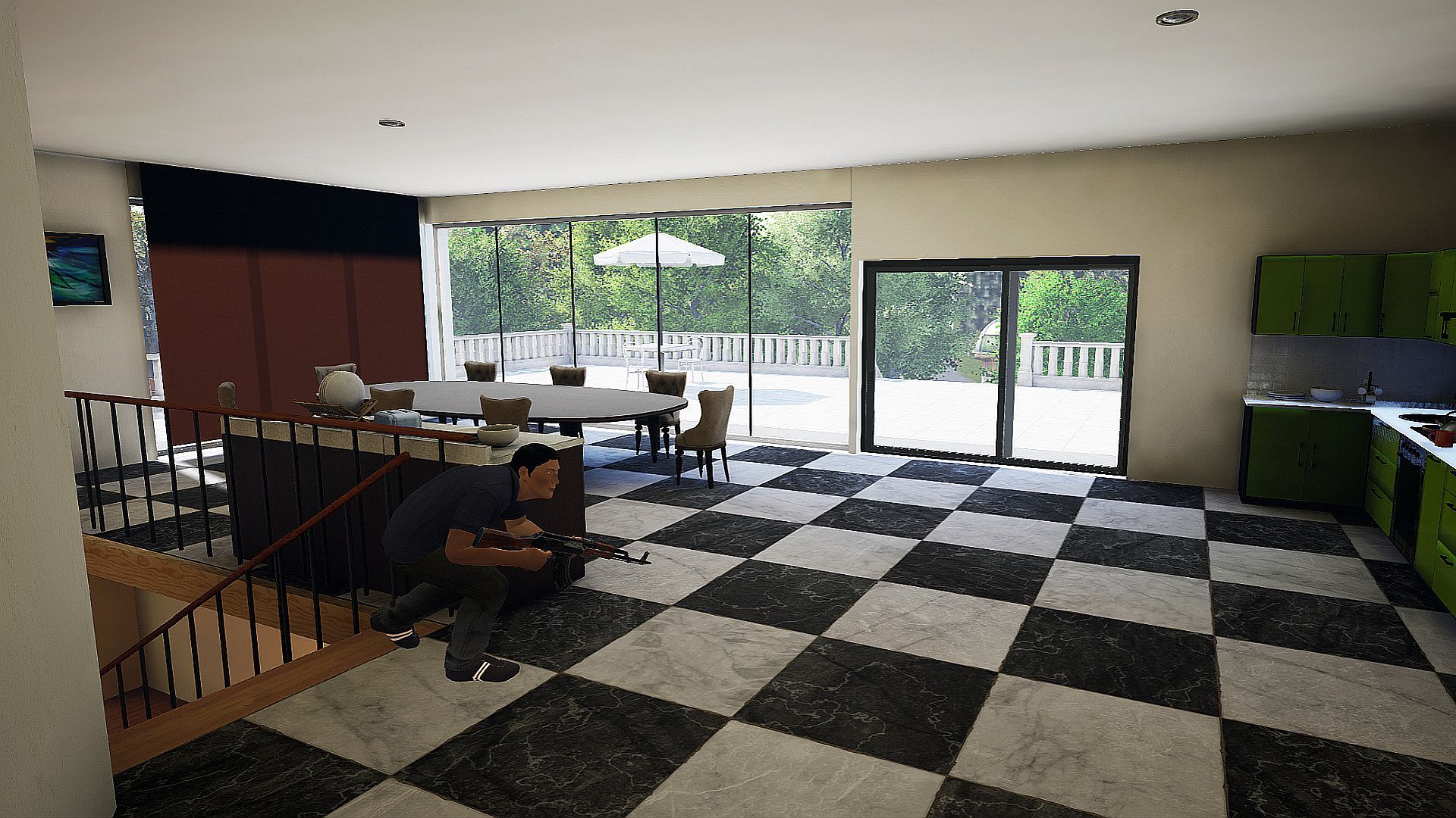 Stealth action demands silent precision as an assassin eliminates targets without detection. Players wield tools like CQC, pistols, SMGs, assault rifles, sniper rifles, and explosives, or go in unarmed for top ratings. Disguise mechanics let you steal enemy clothing to slip into restricted zones, while open-ended missions support multiple approaches in Latvia during the 2030s. Current content spans a quick training level in an urban park and a rural seaside mansion infiltration against a corrupt politician. The arsenal covers poison syringes, combat knives, handguns, shotguns, a minigun, and more-no unlocks needed, all available upfront. Stealth enthusiasts who master versatile, non-linear assassinations will find the most satisfaction.