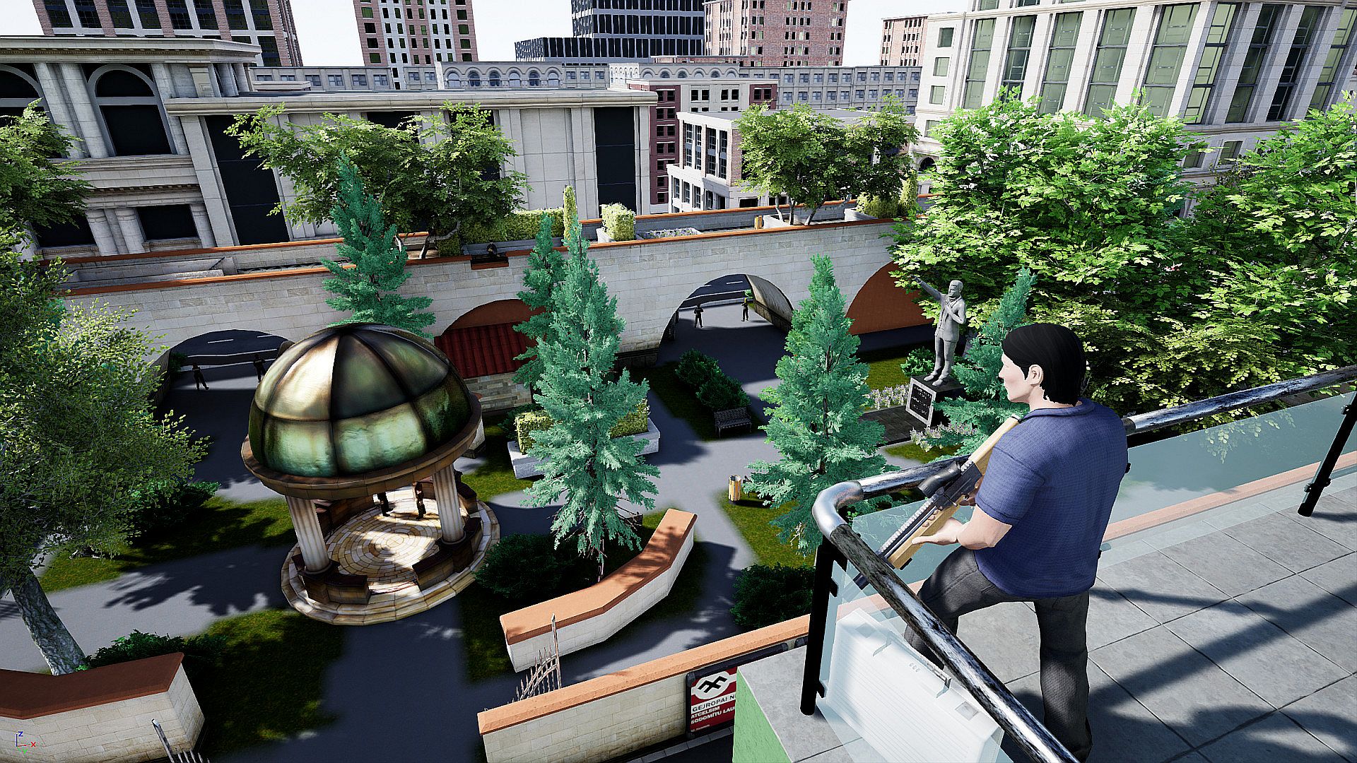 A small urban area with a park at its centre. Introduces the player to various weapons and gameplay mechanics. Can be beaten in about 2 minutes. This is also available in the free demo.