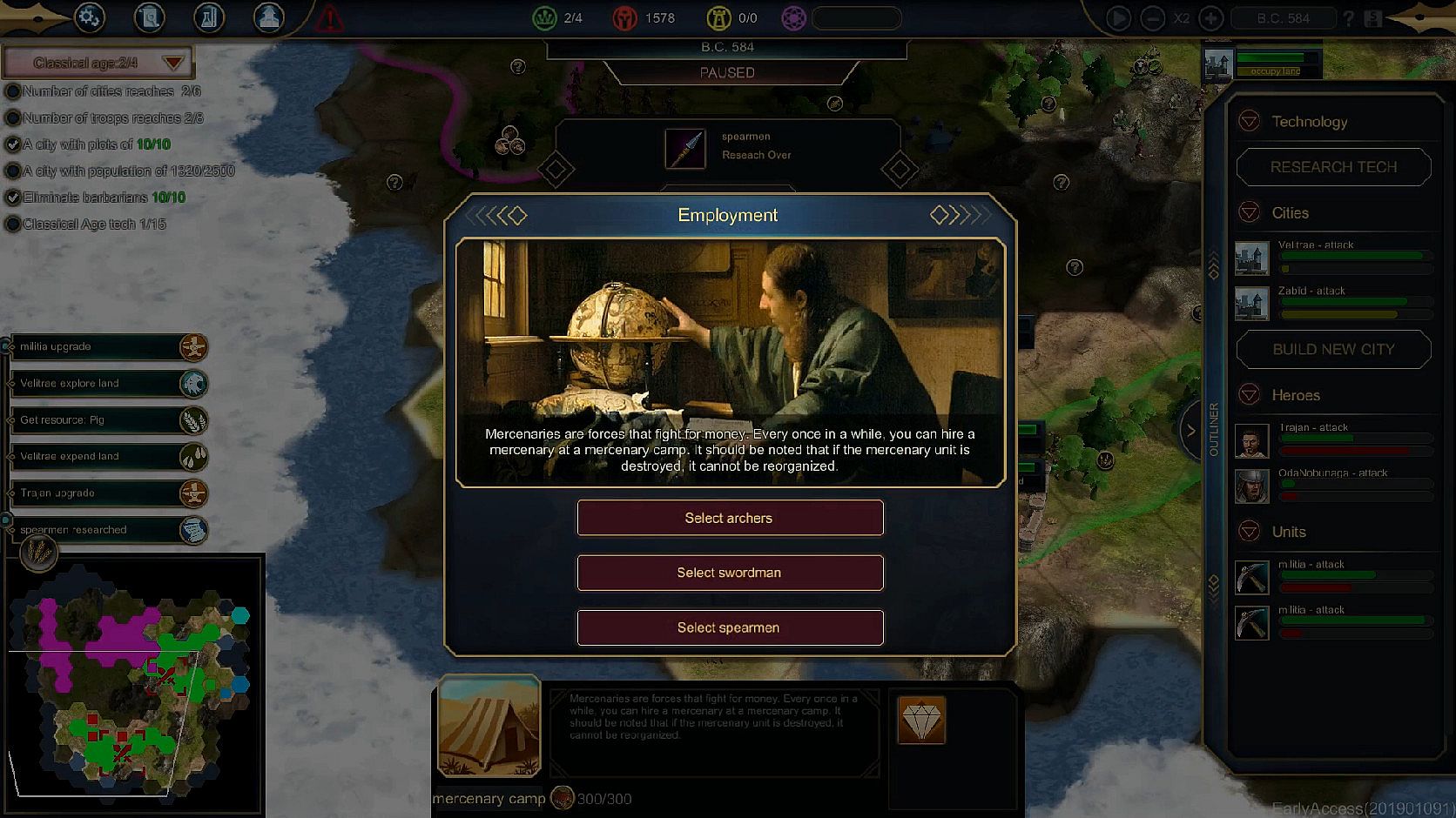 Your city is the foundation of all further development. You must try to increase its influence, occupy more plots and obtain the yields from them.