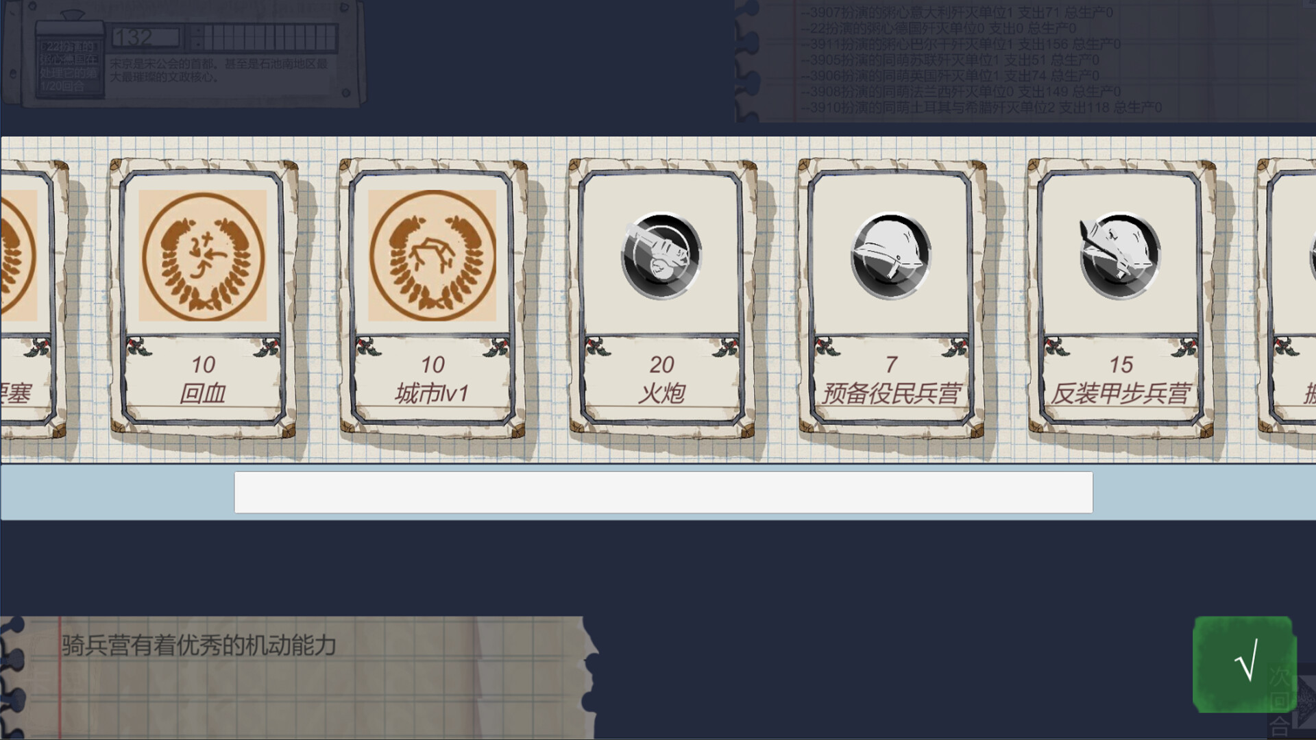 When the player enters the game level, they can move the soldier to occupy the plot of land in another country, build a defensive or economic building, and then click on the second turn.